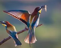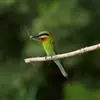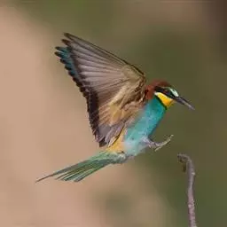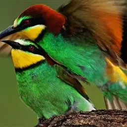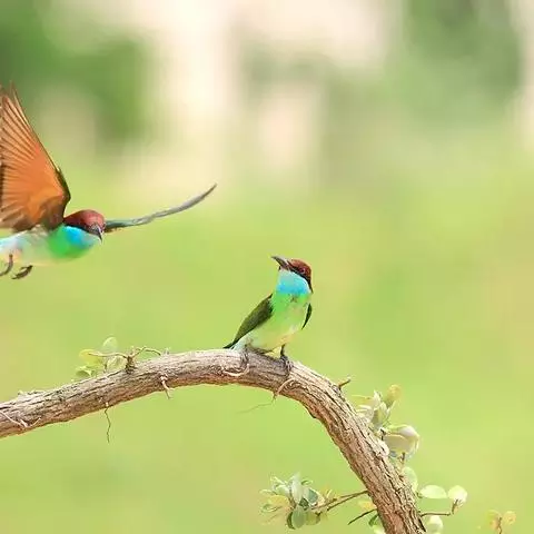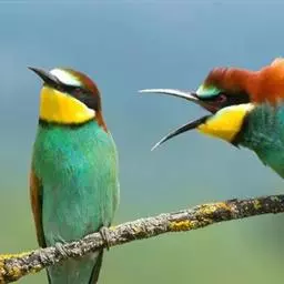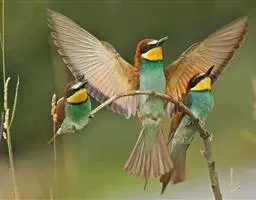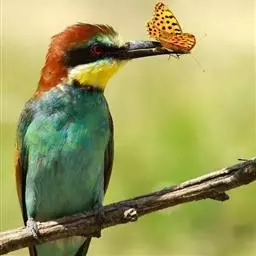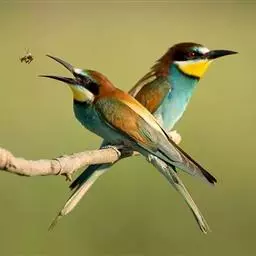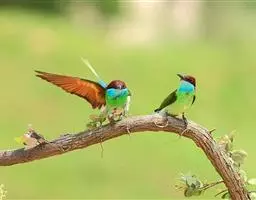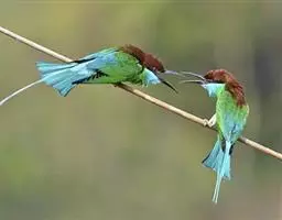 蓝颊蜂虎:是蜂虎科、蜂虎属的鸟类,共有2个亚种。体长27-33厘米,翼展46-49厘米,…