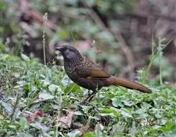 虹膜暗褐色;嘴黑褐色;下嘴基部色较淡,呈角褐色;跗蹠和趾褐色。
