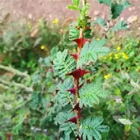 幼枝密被针刺及宽扁大形紫色皮刺,小叶片上面叶脉明显,…