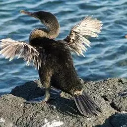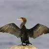 双冠鸬鹚(学名:Phalacrocorax auritus)是鹈形目鸬鹚科的鸟类,鸟嘴强而长,上嘴两侧有沟,嘴端有钩,适于啄鱼;下嘴基部有喉囊;鼻孔小,在成鸟完全隐闭;眼先裸出;颈细长;两翅长度适中,缺第五枚次级飞羽;尾圆而硬直,有12-14枚尾羽;脚位于体的后部;跗蹠短而无羽;趾扁,后趾长,有蹼相连。潜水后羽毛湿透,需张开双翅在阳光下晒干后才能飞翔。