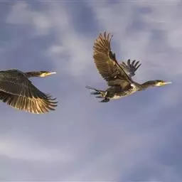 主要食鱼类和甲壳类动物为食。鸬鹚在捕猎的时候,脑袋扎在水里追踪猎物。鸬鹚的翅膀已经进化到可以帮助划水。因此,鸬鹚在海草丛生的水域主要用脚蹼游水,在清澈的水域或是沙底的的水域,鸬鹚就脚蹼和翅膀并用。在能见度低的水里,鸬鹚往往采用偷偷靠近猎物的方式到达猎物身边时,突然伸长脖子用嘴发出致命一击。这样,无论多么灵活的猎物也绝难逃脱。在昏暗的水下,鸬鹚一般看不清猎物。因此,它只有借助敏锐的听觉才能百发百中。