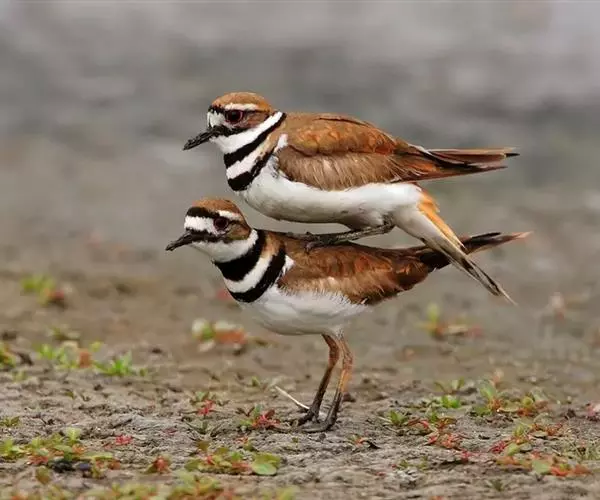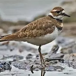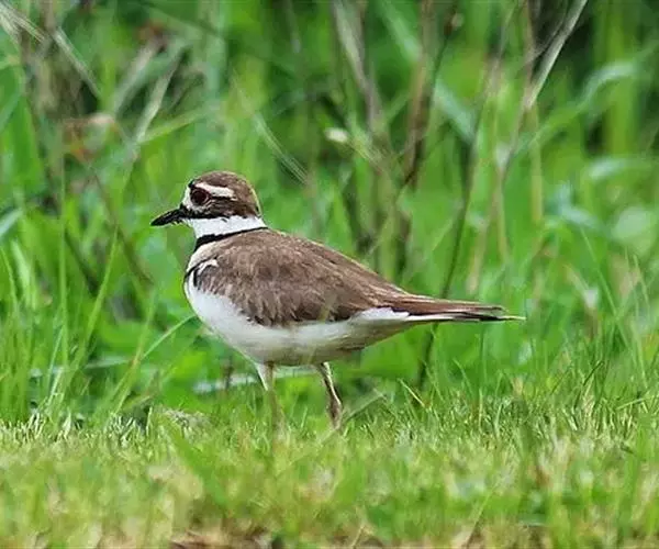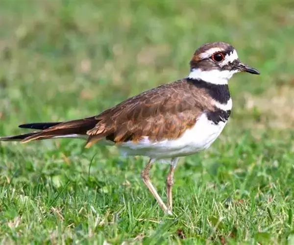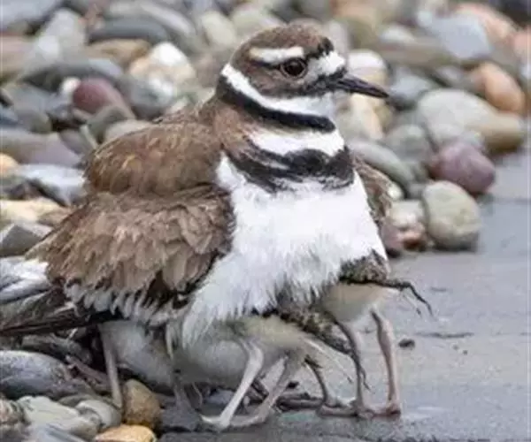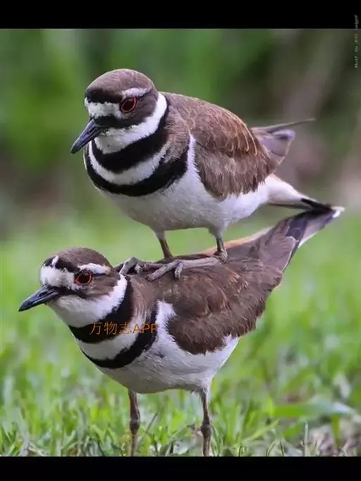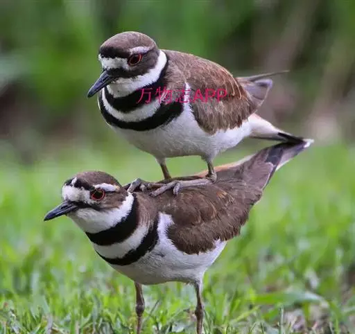 双领鸻(学名:Charadrius vociferus)属中小型涉禽。背褐色,腹白色,胸有两条黑色带。飞行时显现出黑白相间的翅和褐色的尾。跗蹠修长,胫下部亦裸出。中趾最长,趾间具蹼或不具蹼,后趾形小或退化。翅形尖长,第1枚初级飞羽退化,形狭窄,甚短小;第2枚初级飞羽较第3枚长或者等长。三级飞羽特长。尾形短圆,尾羽12枚。是迁徙性鸟类,具有极强的飞行能力。通常沿海岸线、河道迁徙。生活环境多与湿地有关,离不开水。栖息于海滨、岛屿、河滩、湖泊、池塘、沼泽、水田、盐湖等湿地之中。分布于美洲地区。