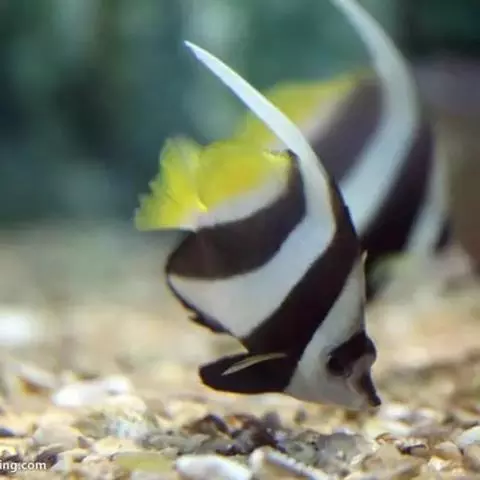 马夫鱼。成鱼体甚侧扁,背缘高而隆起,略呈三角形。背鳍鳍棘11根,第四鳍棘延长呈鞭状,鳍膜亦随之延长…