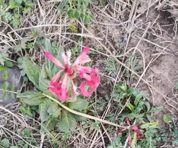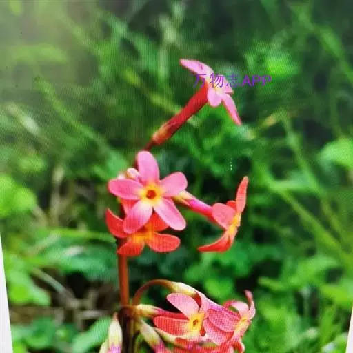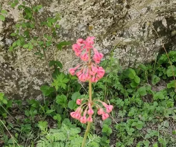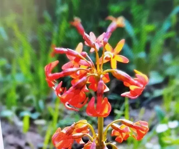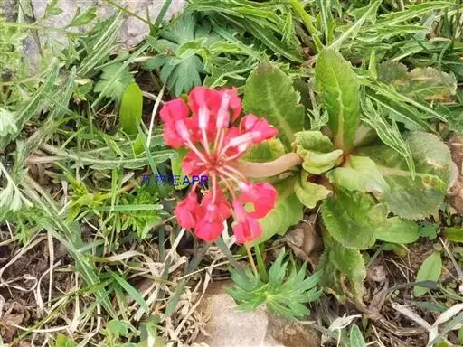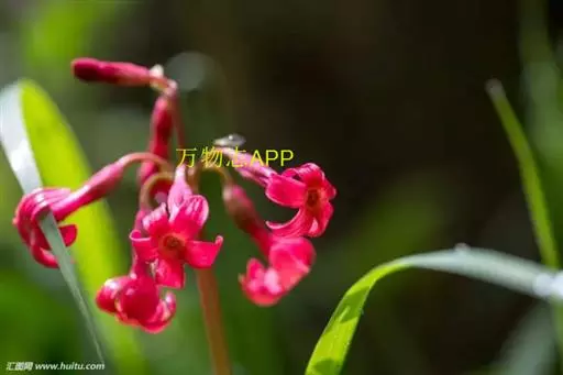 花葶稍粗壮,高20-45(70)厘米;伞形花序1-3轮,几每轮6-10(20)花;苞片披针形,长3 7毫米,先端渐尖,基部互相连合;花梗长l-3(4)厘米;花萼狭钟状,长6-10毫米,分裂达全长的1/3,裂片三角形,边缘具腺状小缘毛;花冠暗朱红色,冠筒管状,裂片狭矩圆形,长4-8毫米,宽2.5-3毫米,全缘,通常反折贴于冠筒上;长花柱花:冠筒长11-13毫米,雄蕊着生于冠筒中下部,距基部4-5毫米,花柱长近达冠筒口;短花柱花:冠筒长4-19毫米,雄蕊着生于冠筒上部,花药顶端距筒口约2毫米,花柱长3 4毫米。蒴果稍长于花萼。花期5-6月,果期7月。