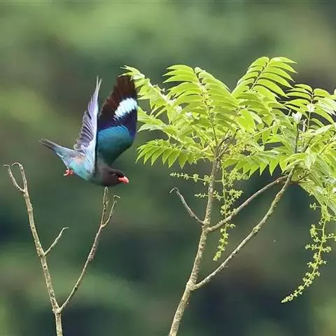 三宝鸟,是佛法僧目佛法僧科三宝鸟属中小型攀禽。成鸟通体为富有光泽的墨蓝绿色,…