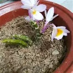 通常选用四壁多孔的塑料或陶瓷花盆,用碳根、泥炭藓、树皮块、木炭块等作盆栽材料。根据兰苗的大小,选择不同规格的花盆,但不宜用大盆栽小苗口上述栽好材料在使用前必需在清水中浸泡1天以上备用。盆底要多垫大瓦片或碎砖块,深度至盆底约1/3处,然后将兰苗放于盆中央,并在一旁插一细竹竿以固定兰苗,再填入其他栽培材料,注意根与根之间用材料隔开。
