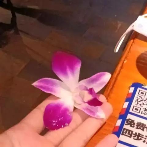 唇瓣淡黄色或白色,带橘红色的唇盘,长约2.5厘米,3裂;侧裂片围抱蕊柱,近倒卵形,前端边缘稍波状;中裂片近圆形或宽椭圆形,先端锐尖,边缘波状;唇盘沿脉纹疏生粗短的流苏;蕊柱长约6毫米;药帽短圆锥形,前端边缘密生短髯毛。花期4-5月。