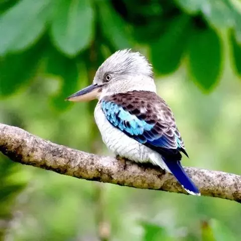 棕腹鱼狗身长38 - 42 cm ,体重305-341 g。主体羽毛蓝色。头顶的冠羽竖起一个小尖峰…