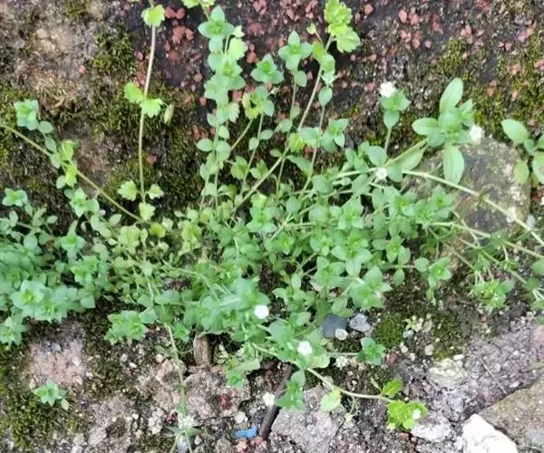 一年生或二年生草本,高10-30厘米。主根细长,支根较多而纤细。茎丛生,直立或铺散,密生白色短柔毛,节间长0.5-2.5厘米。叶片卵形,长4-12毫米,宽3-7毫米,基部狭,无柄,边缘具缘毛,顶端急尖,两面近无毛或疏生柔毛,下面具3脉,茎下部的叶较大,茎上部的叶较小。聚伞花序,具多花;苞片草质,卵形,长3-7毫米,通常密生柔毛;花梗长约1厘米,纤细,密生柔毛或腺毛;萼片5,披针形,长3-4毫米,边缘膜质,顶端尖,外面被柔毛,具显著的3脉;花瓣5,白色,倒卵形,长为萼片的1/3-1/2,顶端钝圆;雄蕊10,短于萼片;子房卵圆形,无毛,花柱3,线形。蒴果卵圆形,与宿存萼等长,顶端6裂;种子小,肾形,表面粗糙,淡褐色。花期6-8月,果期8-9月。