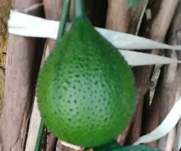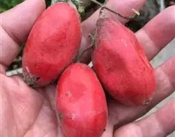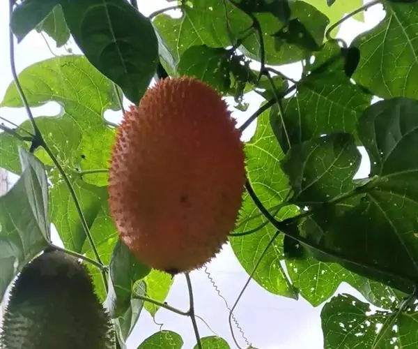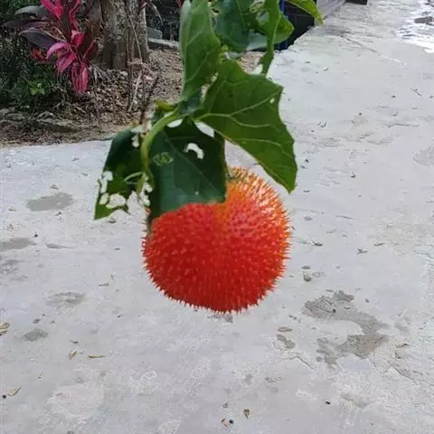 果实卵球形,顶端有1短喙,基部近圆,长达12-15厘米,成熟时红色,肉质,密生长3-4毫米的具刺尖的突起。种子多数,卵形或方形,干后黑褐色,长26-28毫米,宽18-20毫米,厚5-6毫米,边缘有齿,两面稍拱起,具雕纹。花期6-8月,果期8-10月。