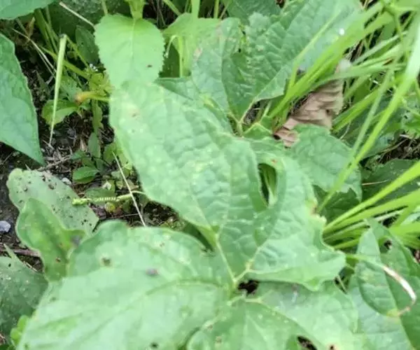 叶柄粗壮,长5-10厘米,初时被稀疏的黄褐色柔毛,后变近无毛,在基部或中部有2-4个腺体;叶片卵状心形或宽卵状圆形,质稍硬,长、宽均10-20厘米,3-5中裂至深裂或不分裂,中间的裂片最大,倒卵形或长圆状披针形,长6-10 (-15) 厘米,宽3-6 (-9) 厘米,先端急尖或渐尖,有短尖头,边缘有波状小齿或稀近全缘,侧裂片较小,卵形或长圆状披针形,长3-7 (-11) 厘米,宽2-4 (-7) 厘米,基部心形,基部弯缺半圆形,深1.5-2厘米,宽2.5-3厘米,叶脉掌状。卷须颇粗壮,光滑无毛,不分歧。