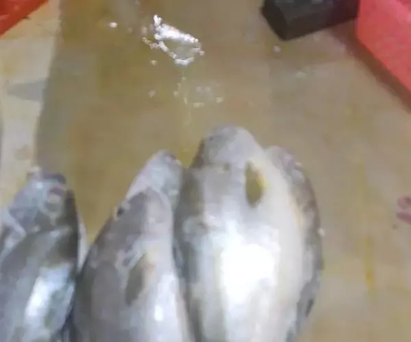 原料:马面鱼(剥皮鱼)一条500克,精盐750克,净油200克,料酒20克,生姜50克,小葱50克。