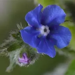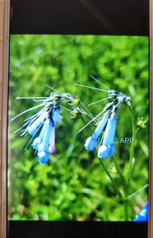 花冠蓝色,长1.2-2.2厘米,无毛,筒部直,长约为檐部的三倍半,直径2-3.5毫米,檐部比筒部稍宽,5浅裂,裂片近半圆形,稍开展,高约2毫米,全缘,喉部附属物半圆形,高约0.5毫米,平滑;雄蕊着生于喉部附属物之间,花丝长约2毫米,花药线状长圆形,长约2.5毫米;花柱与花冠近等长,柱头盘状。