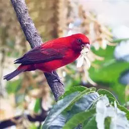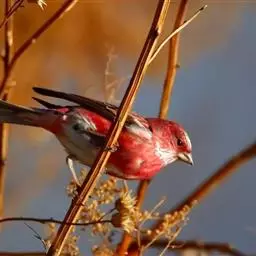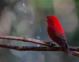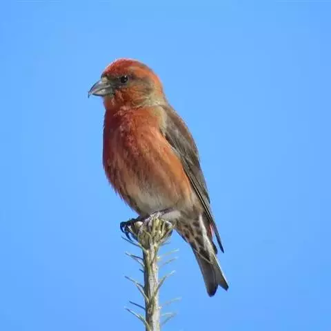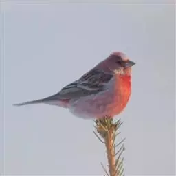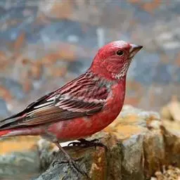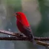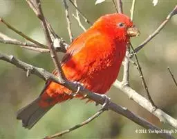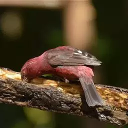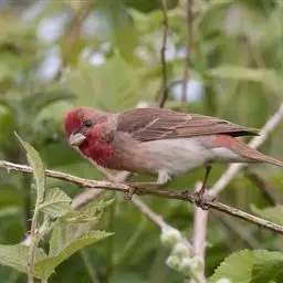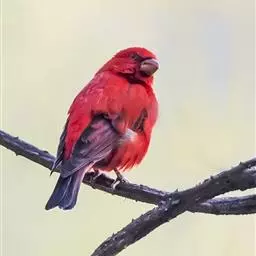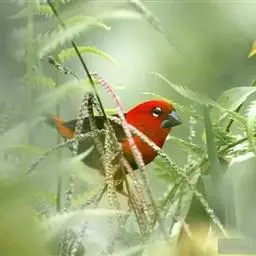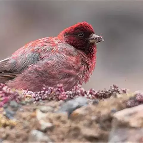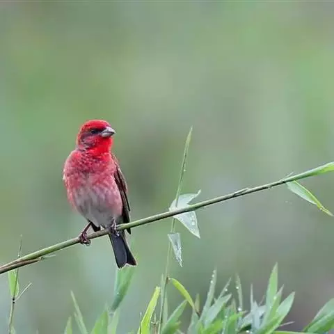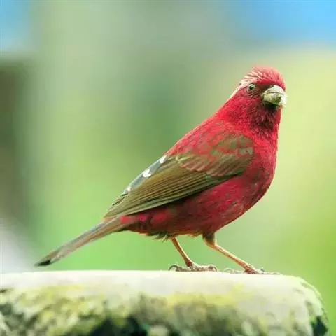 酒红朱雀小型鸟类,体长13~15厘米。雄鸟通体深红色,头部深朱红或棕红色,下背和腰玫瑰红色,…