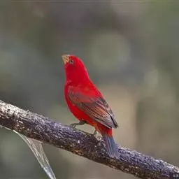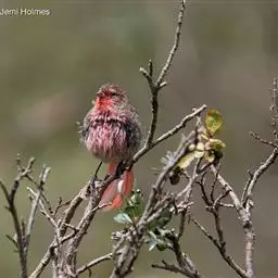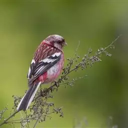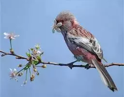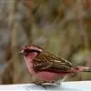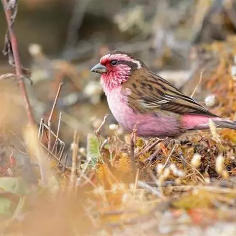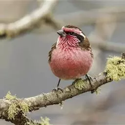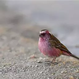 藏朱雀:全长约17-18厘米。雄鸟头部深红色具光辉,喉部暗红色具白色点斑;背部灰白色,各羽具玫瑰红…