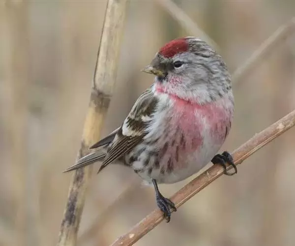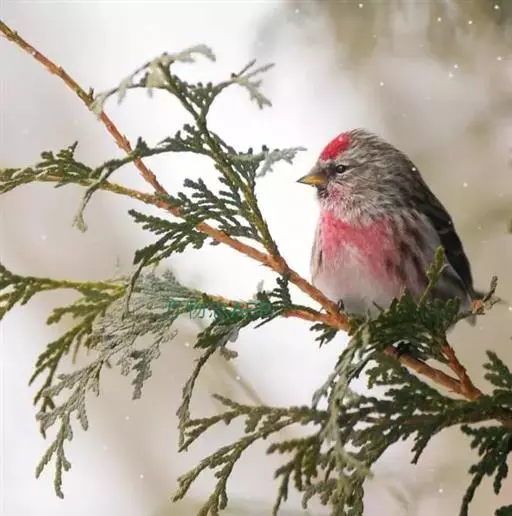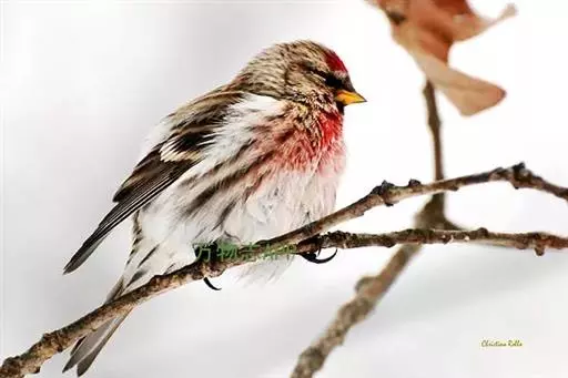 白腰朱顶雀(学名:Acanthis flammea)为雀科金翅雀属的鸟类,体型似麻雀,体长约13厘米。额和头顶深红色,眉纹黄白色;上体各羽多具黑色羽干纹;下背和腰灰白色,而沾粉红色,翼上具二条白色横带;喉、胸均粉红色,下体余部白色。雄性幼鸟与雌鸟同色,但下体沾黄色。