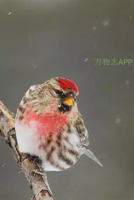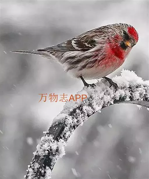 喜马拉雅白眉朱雀:小型鸟类,体长15-17厘米,体重24-35克。额基、眼先深红色,…