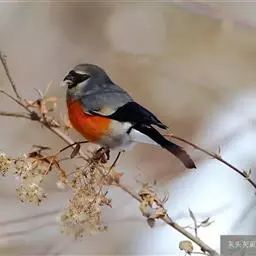 北朱雀,是燕雀科朱雀属鸟类。雄鸟额和头顶前部珠白色具窄的粉红色羽缘,…