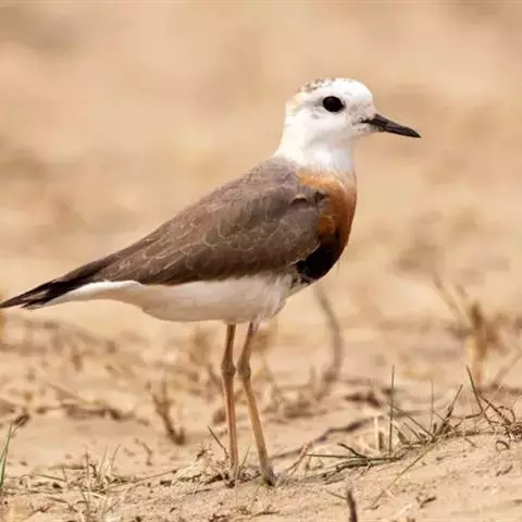 东方鸻:属小型涉禽。体重80-95克,体长220-255毫米。在夏季,前额、眉纹和头的两侧白色,头…