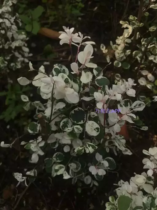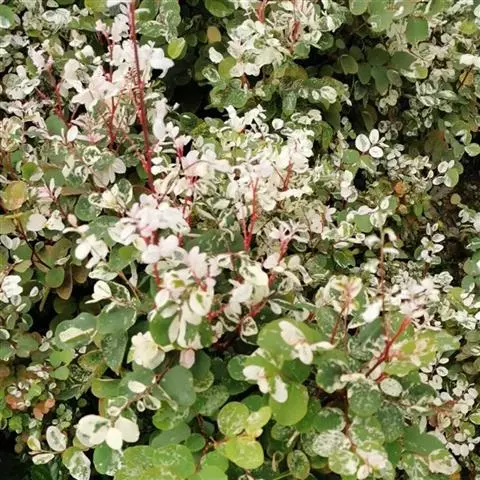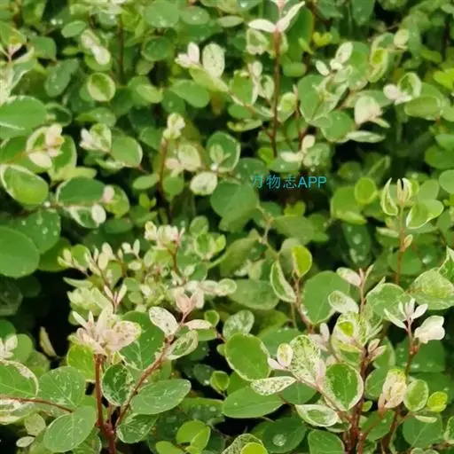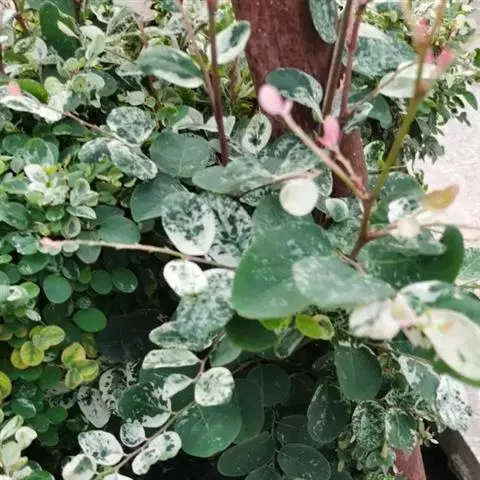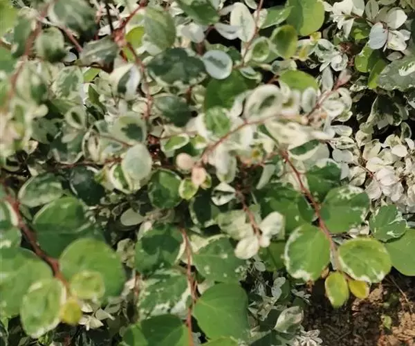 常绿小灌木。株高约50~120厘米,枝条暗红色 。叶互生,圆形或阔卵形,全缘。白色或有白色斑纹。嫩时白色,成熟时绿色带有白斑,老叶绿色。花小,花有红色、橙色、黄白等色,花期、夏秋两季。