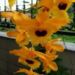 具槽石斛(学名:Dendrobium stuposum Lindl.):茎通常直立,肉质,扁棒状,下部收狭为细圆柱形,不分枝,具纵条纹和数个节。叶纸质,数枚,互生于茎的近顶端,常斜举,长圆形。总状花序从当年生具叶的茎上端发出,长8-15厘米,下垂,密生少数至多数花;花质地薄,白天张开,晚间闭合,奶黄色;花瓣近倒卵形,长2.4厘米,宽1.1厘米,先端锐尖,基部收狭为短爪,具5条脉;唇瓣的颜色较深,呈橘黄色,近基部两侧各具1个褐色斑块,近圆形。花期6月。
