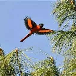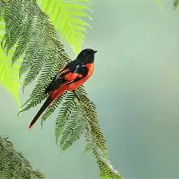 赤红山椒鸟为山椒鸟科山椒鸟属的鸟类,俗名红十字鸟、朱红山椒鸟。雄鸟红色,雌鸟黄色。…