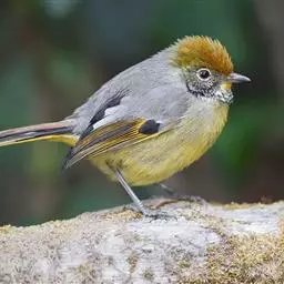 银耳相思鸟小型鸟类,体长14~18厘米。头顶黑色,耳羽银灰色,前额橙黄色;外侧飞羽橙黄色,基部朱红色,…