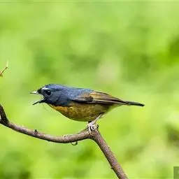 棕胸蓝姬鹟:属小型鸣禽,体长10-13厘米,体重6-10克,是一种体型很小的灰蓝及棕色鹟,…