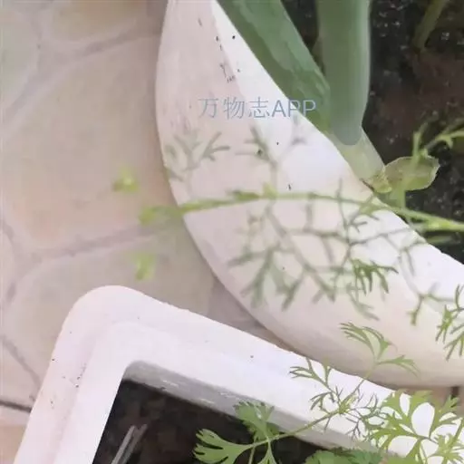 一年生或二年生,有强烈气味的草本,高20-100厘米。根纺锤形,细 芫荽 长,有多数纤细的支根。茎圆柱形,直立,多分枝,有条纹,通常光滑。根生叶有柄,柄长2-8厘米。