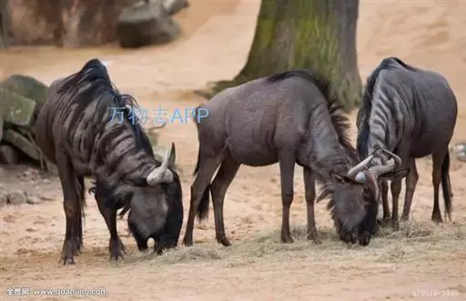 角马是生活在非洲草原上的大型羚牛 ,长得牛头、马面、羊须。头粗大而且肩宽,很像水牛;后部纤细,比较像马;颈部有黑色鬣毛。全身有长长的毛,光滑并有短的斑纹。全身从蓝灰到暗褐色,有黑色的脸、尾巴、胡须和斑纹,颜色也因亚种、性别和季节的不同而有所变化。角马个头硕大,体重可达270公斤,一般寿命都在15到20年左右。