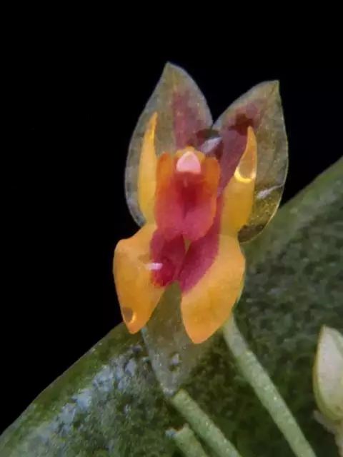 长叶山兰:假鳞茎椭圆形至近球形,有2-3节,外被撕裂成纤维状的鞘。叶2枚,偶有1枚,生于假鳞茎顶端…