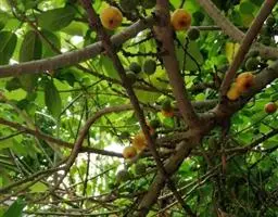 榕果单生叶腋,大而梨形,直径3-5厘米,顶部下陷,成熟时紫红色或黄色, 基生苞片3,卵形;瘦果透镜状。花果期5-7月。