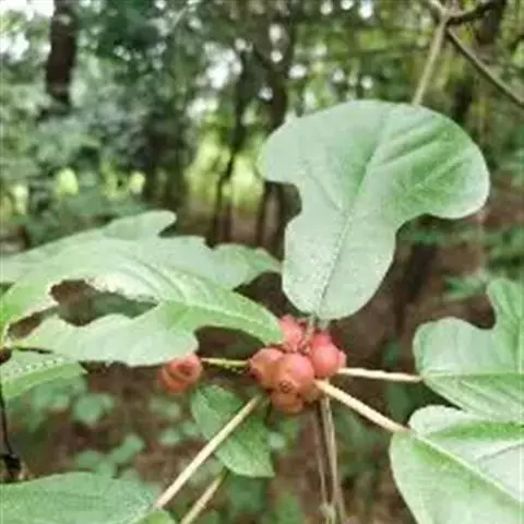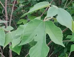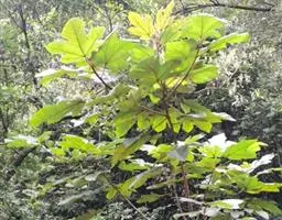 落叶灌木,高3-10米,多分枝;树皮灰褐色,皮孔明显;小枝直立,粗壮。叶互 生,厚纸质,广卵圆形,长宽近相等,10-20厘米,通常3-5裂,小裂片卵形,边缘具 不规则钝齿,表面粗糙,背面密生细小钟乳体及灰色短柔毛,基部浅心形,基生侧脉3- 5条,侧脉5-7对;叶柄长2-5厘米,粗壮;托叶卵状披针形,长约1厘米,红色。