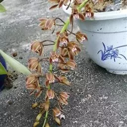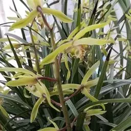 寒兰是兰科兰属的地生草本植物。茎为椭圆形;叶呈带状,尾部修长渐尖,叶脉较明显;每秆花枝开5-12朵,…