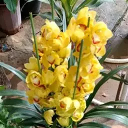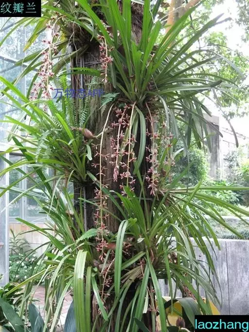 纹瓣兰(学名:Cymbidium aloifolium (L.) Sw.)附生植物,假鳞茎卵球形,通常包藏于叶基之内,叶4-5枚,厚革质,花葶从假鳞茎基部穿鞘而出,下垂,长20-60厘米,萼片与花瓣淡黄色至奶油黄色,萼片狭长圆形至狭椭圆形,花瓣略短于萼片,狭椭圆形,花期4-5月,偶见10月。