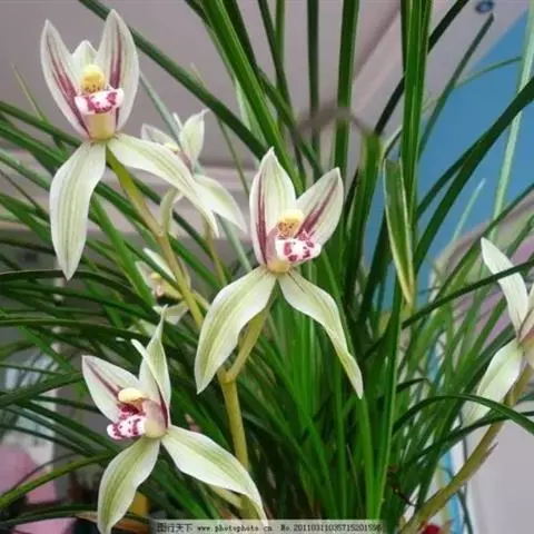 兰花:附生或地生草本,叶数枚至多枚,通常生于假鳞茎基部或下部节上,二列,带状或罕有倒披针形至狭椭圆…