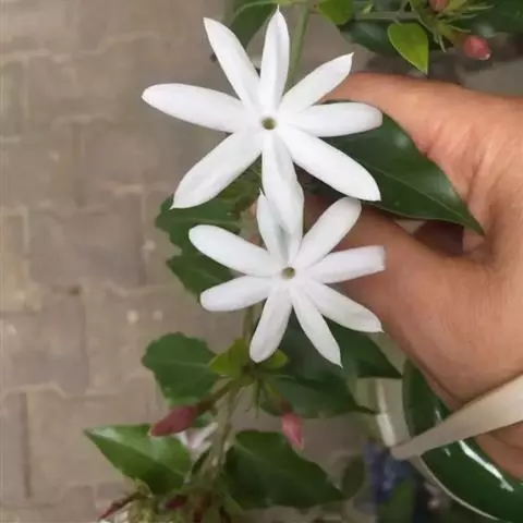 多瓣茉莉枝条有较明显的疣状突起。叶片浓绿,花蕾紧结,较圆而短小, 多瓣茉莉 顶部略呈凹口。