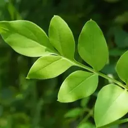茉莉花 叶对生,单叶,叶片纸质,圆形、椭圆形、卵状椭圆形或倒卵形,长4-12.5cm,宽2-7.5cm,两端圆或钝,基部有时微心形,侧脉4-6对,在上面稍凹入或凹起,下面凸起,细脉在两面常明显,微凸起,除下面脉腋间常具簇毛外,其余无毛;叶柄长2-6mm,被短柔毛,具有关节。