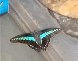 巴黎翠凤蝶中型凤蝶,躯体黑褐色,散布绿色亮鳞。后翅M3脉端有一明显叶状尾突。翅背面底色黑褐色,密布…