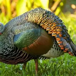 眼斑吐绶鸡:是火鸡科的两种鸟类之一。体型比普通火鸡略小些,体长1米左右,体重2.4-5.4千克,…