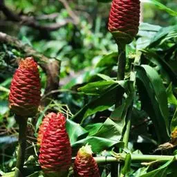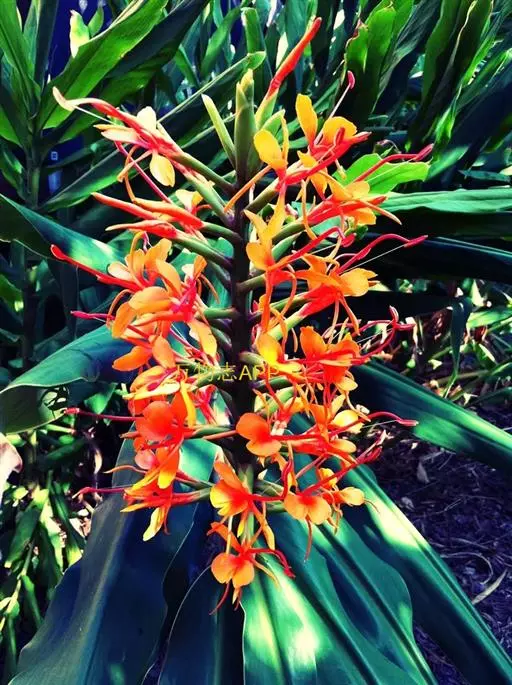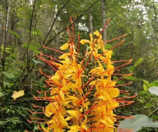 红姜花的整个花序婷婷玉立,火红如炬,圆柱形的花柱从四面八方开出朵朵红花,花期长,极为美丽。在欧美已选育出了许多园艺品种。该种花卉粗生易管,稍加驯化即可进入园林观赏。