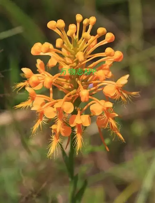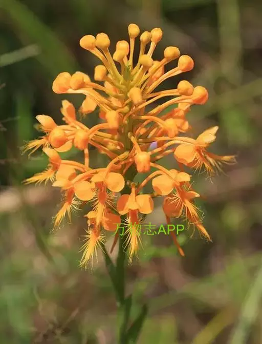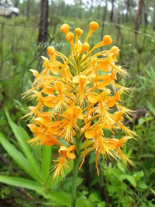 穗状花序稠密,稀较疏,圆柱形,长15-25厘米,径6-7厘米,花序轴粗壮,无毛或被稀疏的长柔毛;苞片革质,内卷或在稠密的花序上较扁平,长圆形,急尖或钝,长3-3.5厘米,顶端被疏柔毛,稀无毛,内有3花;花红色,花萼长2.5厘米,具3齿,特别是顶部被疏柔毛;花冠管稍超过萼,裂片线形,反折,长3厘米;侧生退化雄蕊披针形,长2.3厘米,唇瓣圆形,径约2厘米或较小,深2裂,基部具瓣柄;花丝长5厘米,花药干时弯曲,长7-8毫米;子房被绢毛,长2.5-3毫米。