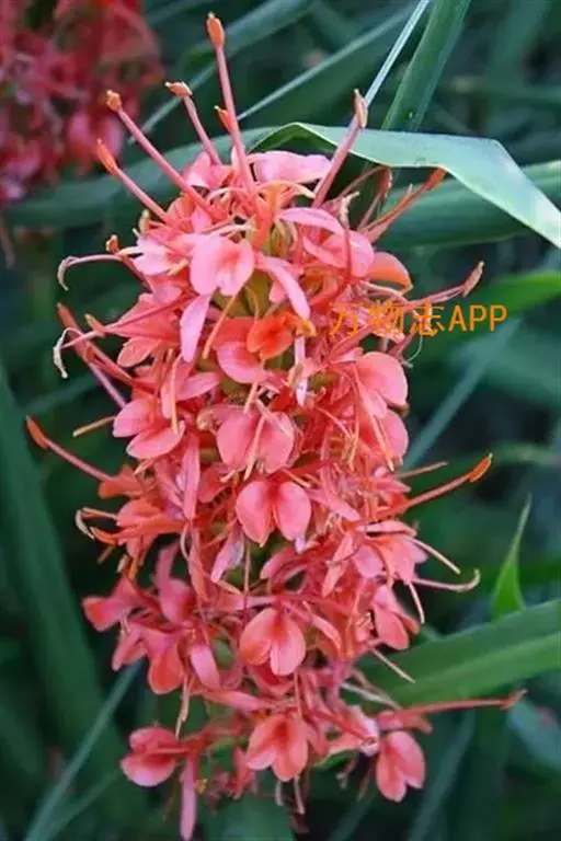 红姜花(学名:Hedychium coccineum Buch.-Ham.),姜科,姜花属多年生草本植物,高可达2m。叶片狭线形,穗状花序多较稠密,圆柱形,花红色。蒴果开裂,种子红色。6-8月开花,10月结果。