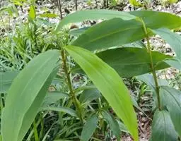 陆生或附生草本,具块状根茎。 茎高1.5-2米。叶片狭线形,长25-50厘米,宽3-5厘米,顶端尾尖,基部渐狭或近圆形,两面均无毛;无柄;叶舌长1.2-2.5厘米。
