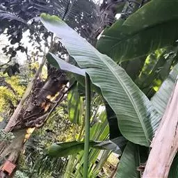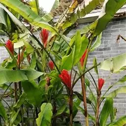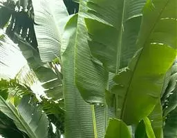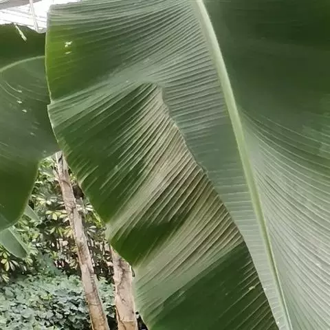 红蕉,假茎高1-2米。叶片长圆形,长1.8-2.2米,宽68-80厘米,叶面黄绿色,叶背淡黄绿色,…