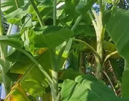 香蕉’),芭蕉科芭蕉属多年生草本植物,植株丛生,有匐匍茎;假茎浓绿有黑色斑点;叶片长圆形,…