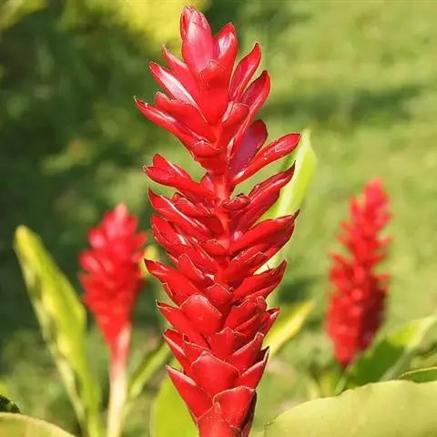 紫苞芭蕉形如一枝亭亭玉立、含苞待放的荷花,但却开在高高的芭蕉树上,这就是紫苞芭蕉。