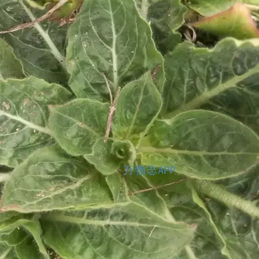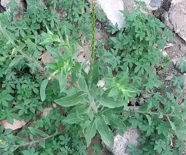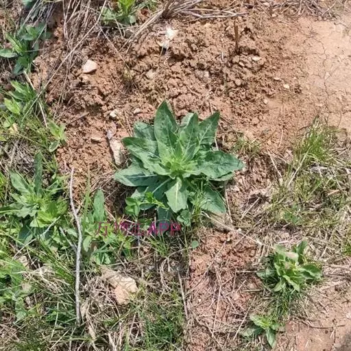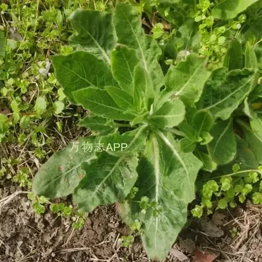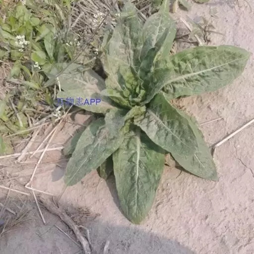一年生草本,主根径达2厘米,全株尤茎上部、花序、叶、苞片、萼片蜜被伸展灰白色长毛与腺毛;茎直立,不分枝,或在顶部花序之下少数分枝,高50-100厘米。基生叶宽倒披针形,长达12厘米,宽达2.5厘米,先端锐尖,基部渐狭下延至柄。