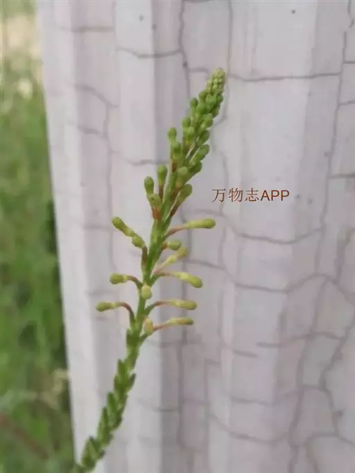 小花山桃草,拉丁文名:Gaura parviflora Dougl. 柳叶菜科、山桃草属一年生草本,主根径达2厘米,全株尤茎上部、花序、叶、苞片、萼片蜜被伸展灰白色长毛与腺毛;茎直立,不分枝,或在顶部花序之下少数分枝,先端锐尖,基部渐狭下延至柄。茎生叶狭椭圆形、长圆状卵形,有时菱状卵形。种子,卵状,长3-4毫米,径1-1.5毫米,红棕色。花序穗状,蒴果坚果状,具不明显4棱。花期7-8月,果期8-9月。原产美国,尤以中西部最多的一种野草,南美、欧洲、亚洲、澳大利亚有引种并逸为野生。