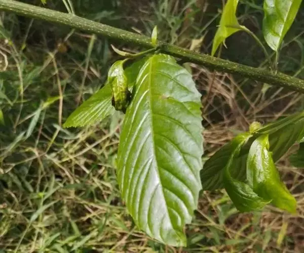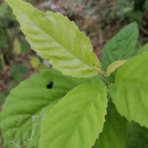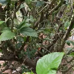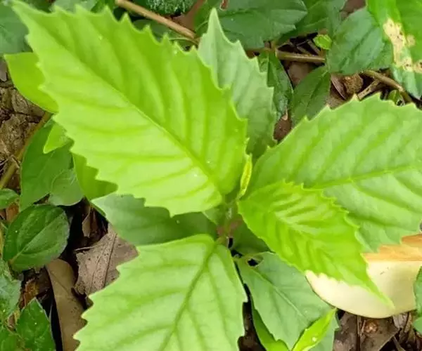 叶片纸质或近坚纸质,广椭圆状卵形至椭圆形,顶端急尖或突然渐尖,基部楔形,长7-11厘米,宽3-5厘米,边缘从中下部以上具粗锯齿,下部常全缘,幼时两面被密长硬毛,以后叶面除脉外近无毛,背面被长硬毛,中脉隆起,侧脉7-9对,尾端直达齿尖,叶柄长7-10毫米,被长硬毛或短柔毛。